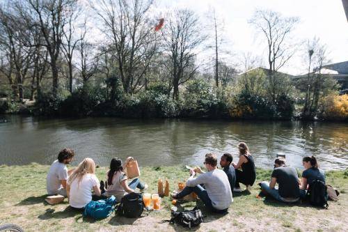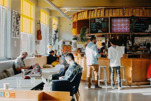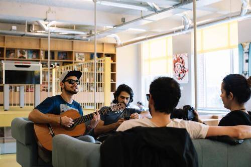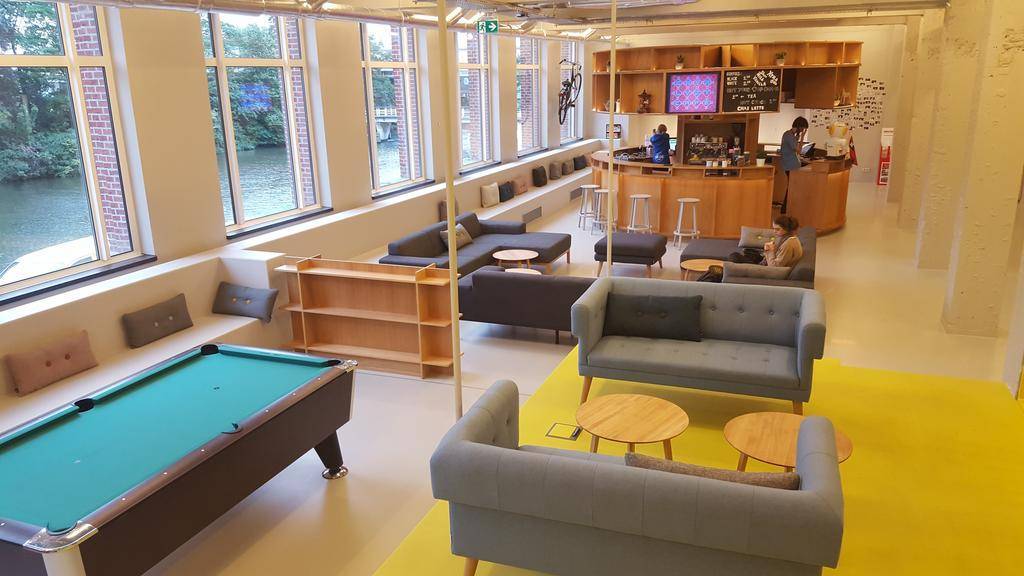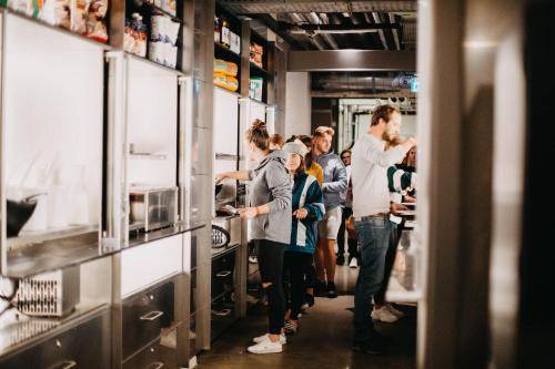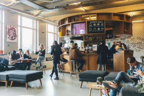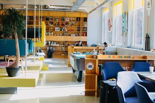 Outside of the basic rooms, the building is quite interesting, as it is located in a laboratory from the 1920s and maintains several original features. Additionally, there are multiple lounge spaces plus a cafe, a library, a bar and a shared guest kitchen all on-site.