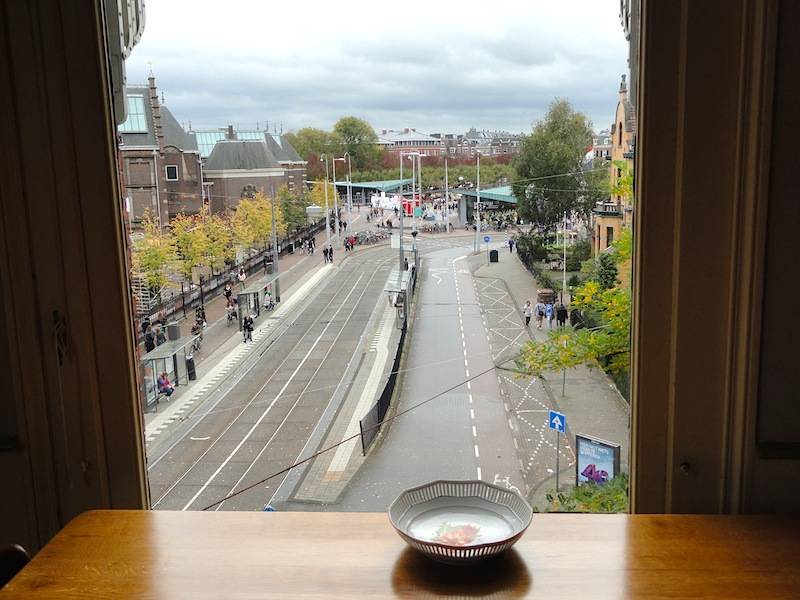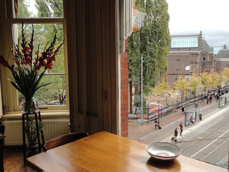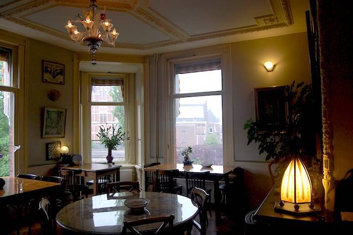 Breakfast, included in the room rate, is served at small wooden tables in the Hotel Museumzicht’s charming breakfast room, which doubles as a TV lounge with a small book-exchange library (and more reliable Wi-Fi). The room features period details (nice crown molding, antique furnishings), along with fresh flowers, old theater posters and Murano-style chandeliers. Best of all, the lounge offers a bird’s-eye view over the busy museum area.