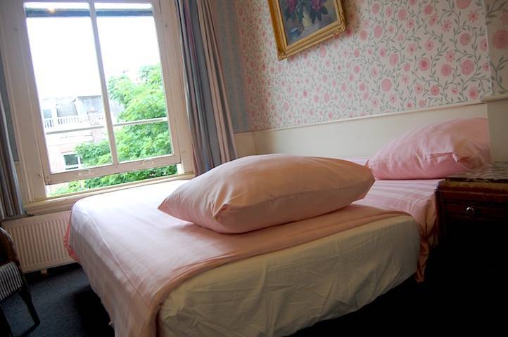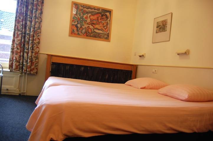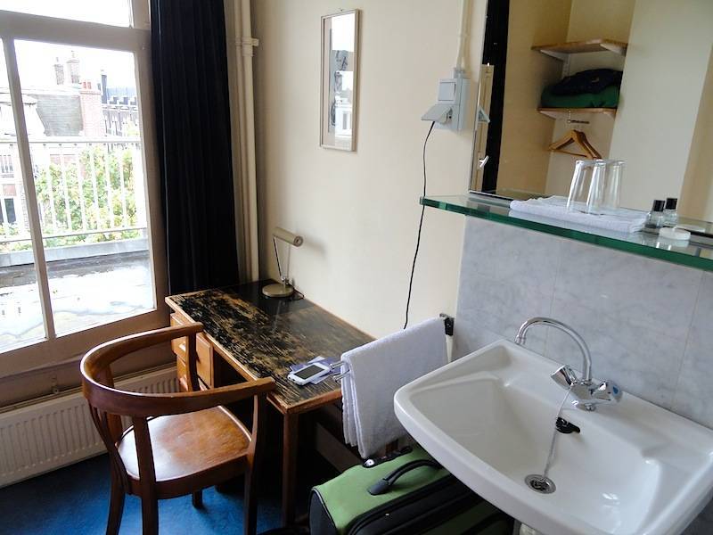 Although a handful of doubles are equipped with a private bathroom, most rooms share two toilets and two showers on the third and fourth floor. (The nicest shower, it should be noted, is tiled with varicolored ceramic tiles in a lovely traditional Dutch style.) Rooms with shared facilities are equipped with a sink.