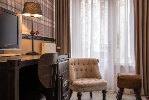 The hotel was formerly known as the Chic & Basic Hotel, a EuroCheapo pick (for obvious reasons). The new management gave the old “Basic” rooms a design overhaul, infusing them with a style that struck us as a cross between a feisty English prep school and an eccentric English aunt's country cottage.