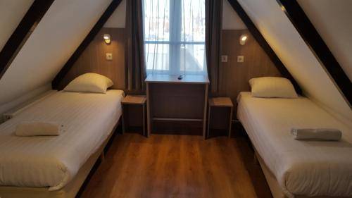 Located a three-minute walk from Central Station in the thumping heart of the Red Light District, the Old Quarter offers the basics at low rates by Amsterdam’s standards. The hotel’s 32 rooms are clean if simple, and each includes a couple of chairs, a work desk, night stand, phone and TV. The furniture is typical Ikea-style, and perhaps 10 years old, but still in decent condition. Walls show some scuffs here and there.