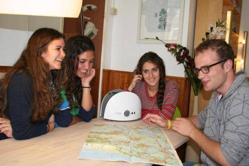 Some rooms have a private bathroom, but most share clean and efficient showers and toilets in the hallway. Rooms with shared bath are equipped with their own sink and mirror.