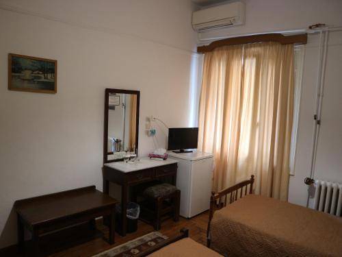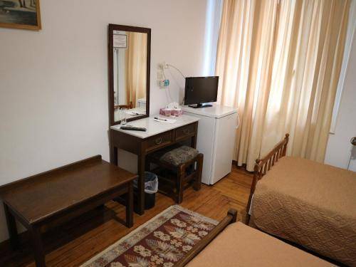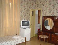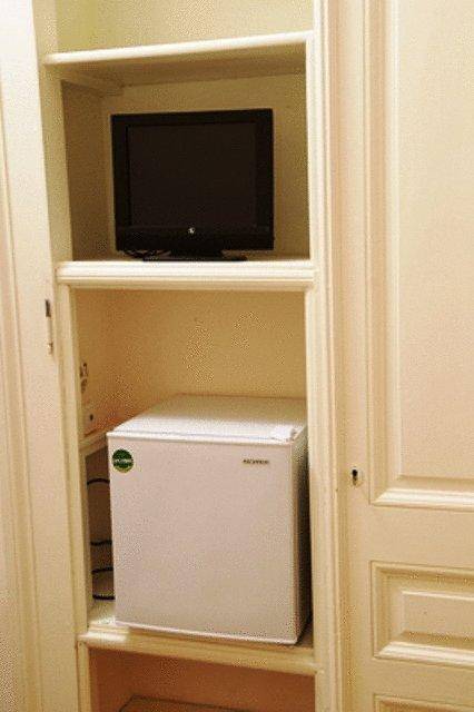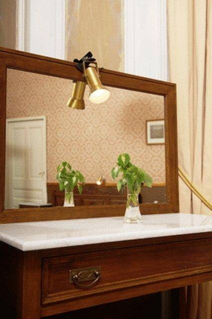 The beds are dark wood, and the lamps a retro brown. A vanity table with an enormous mirror may round out your room's offerings, bringing you directly to the scene of a film set at the turn of the 20th century. But rooms do have all the features modern travelers enjoy, including televisions, air conditioning and fridges in some rooms.