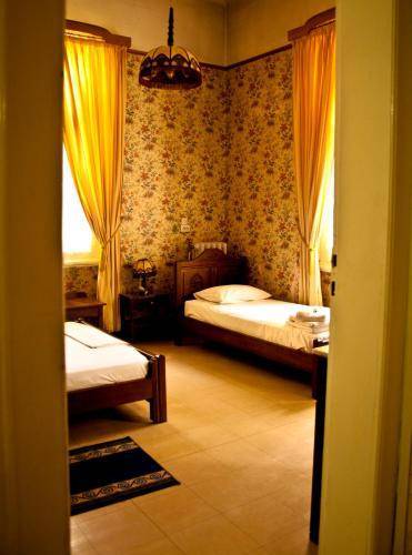 The century-old walls are covered in their original, fading-yet-still-colorful paint and antique-looking floral wallpaper. Depending on your disposition and sense of imagination, this either gives them the enchanting appeal of 19th-century Athens or an uncanny resemblance to staying at Grandma's house.