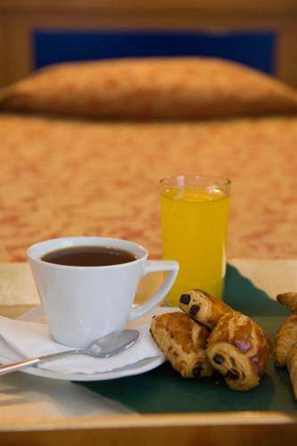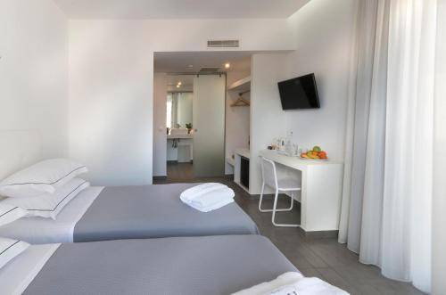 The 31 renovated rooms come with tufted headboards and beige bedside tables. En suite bathrooms are done in gray-and-white tile and silver fixtures. Toiletries are included. All rooms come equipped with air conditioning, satellite television, and free Wi-Fi.