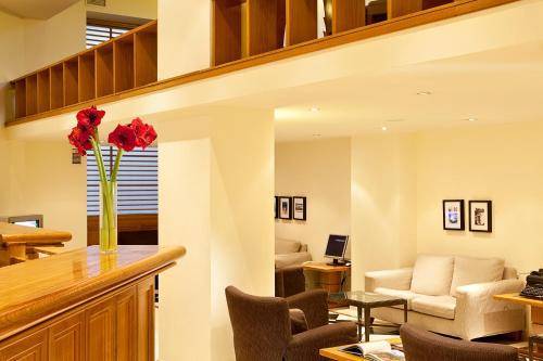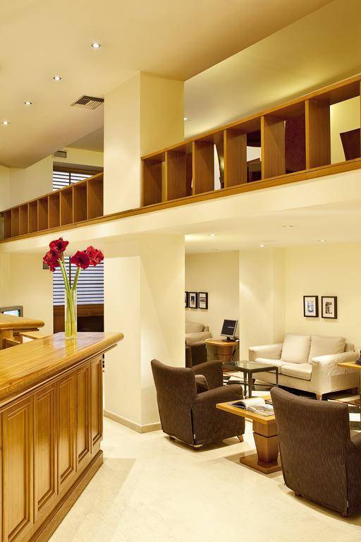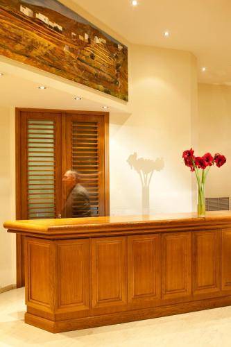 The Achilleas sports a splashed-out lobby with checkerboard marble floors, a small television corner lounge, and cute curios such as an antique typewriter (plus a more functional, modern PC with Internet access).