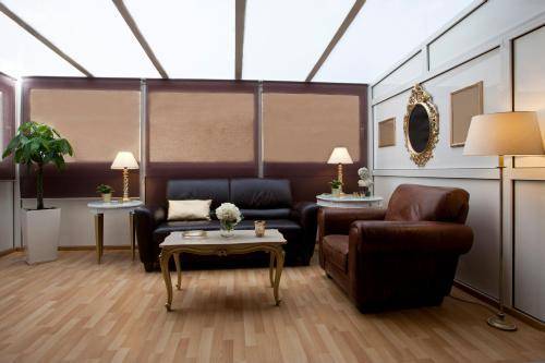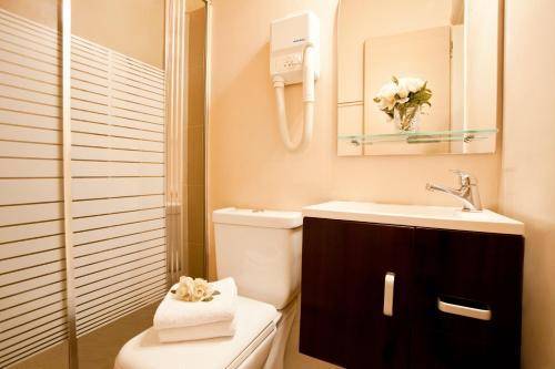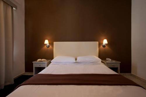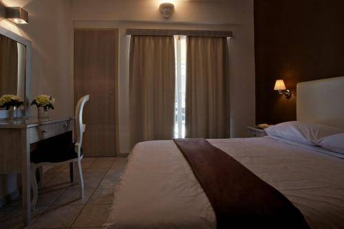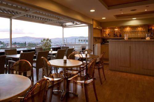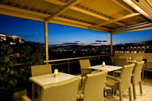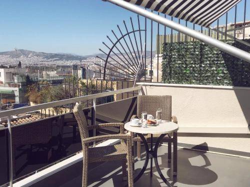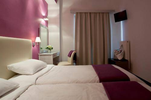 All rooms are equipped with air conditioning, telephones, and satellite TV. Balconies accompany every room in the hotel. Those on the fourth and fifth floors offer spectacular views of the Acropolis. Bathrooms are en suite with an aesthetic identical to the bedrooms: simple, clean, and unpretentious.