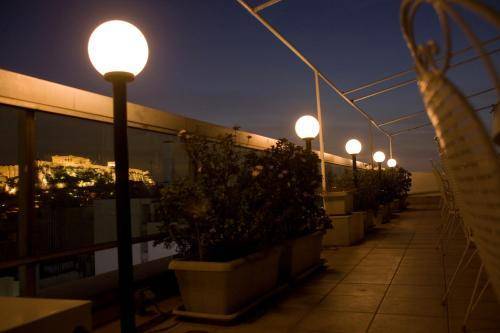 The Arethusa does have its charms, however. Several rooms have truly outstanding views of Plaka. We also loved the dining room on the top floor, with its bird's eye views of the Acropolis. Its simple, dainty, modern feel made us fantasize, again, about being locked in a suspenseful Cold War drama. All that said, in our opinion, the Arethusa's best feature is the mezzanine breakfast room, which looks out over busy Mitropoleos.
