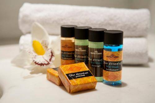 Not surprisingly, rooms at the Hermes are serviceable and on the roomy side, with blond wood floors, curved desks, and gentle lighting. Bedspreads are perfectly nice. All rooms are equipped with air conditioning, satellite television, and mini fridges. Balconies are set up with huge translucent dividers, an appealing and smart way to maintain privacy.