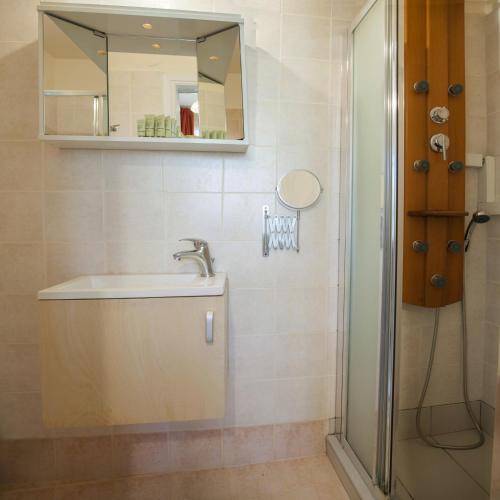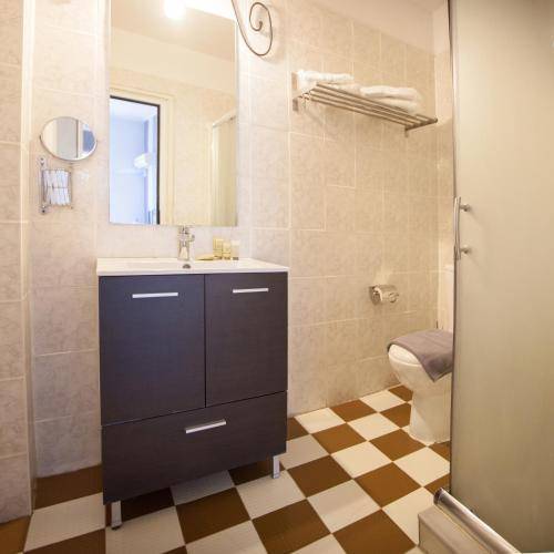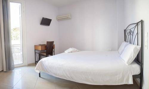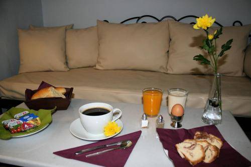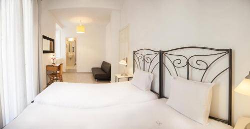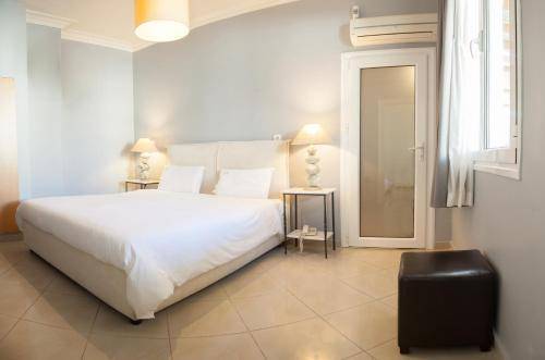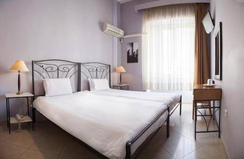 While the Kimon’s 17 rooms do not quite live up to the entryway, they are comfortable and even a little bit stylish if compact. Modern paintings on walls provide nice splashes of color, and wrought-iron bedframes are appealing. We also liked the retro round wall mirrors, which made us feel like 1950s movie stars. All rooms are equipped with air conditioning, television, and free Wi-Fi. Several rooms have modest balconies, which are good for allowing guests to enjoy the prime Plaka location. (Ask ahead.)