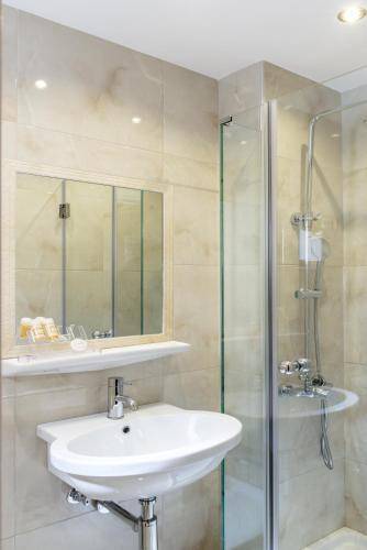 Students and families are the most common guests here. The entryway, in coordination with the hotel's name, is marble and full of cute mosaics. The mirrored lounge area next to the reception is comfortable, though a bit dark even during daylight hours.