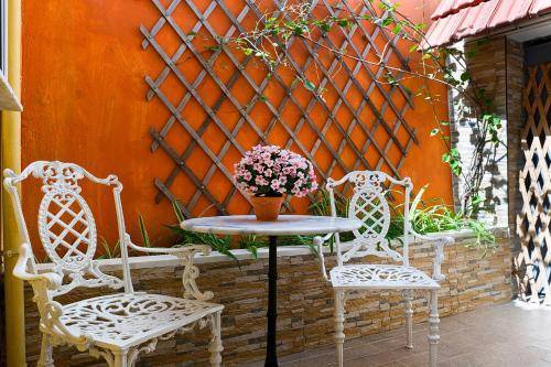 Various hues, from sky blue to buttery yellow, accent the walls and draperies in each of the 16 recently renovated rooms, adding color to the white linens and wrought-iron furnishings. We liked the mini-fridges and free Wi-Fi in every room.