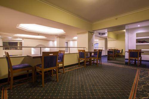 The Marina's lobby is completely lackluster but not representative of the rest of this renovated hotel. Bedrooms are clean, air-conditioned, and comfortable, with light beige bedding and carpeting. They come equipped with televisions, mini-fridges, and free Wi-Fi. Beds, closets, and desks come in dark wood, while the accompanying tiled bathrooms feature a blue-and-beige color scheme.