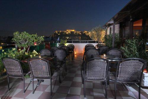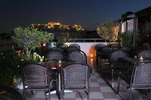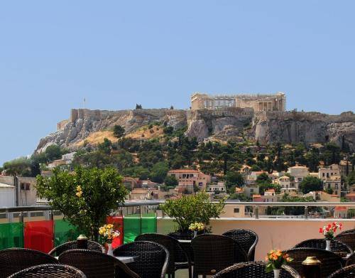 Just steps from the heart of Monastiraki and Plaka, this three-star hotel has a throwback vibe and a rooftop deck with fantastic Acropolis views.