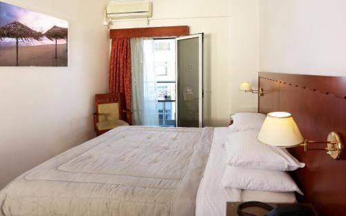 Attalos's 80 rooms are very simple. Walls are unadorned save for the framed reproductions of mythological figures. Bed units are basic. Amenities are standard, except for nice touches that include air conditioning, satellite television and complimentary Wi-Fi. Rooms toward the back are away from the street noise on the busy Athinas thoroughfare and have roomy balconies as well.