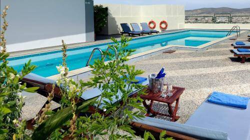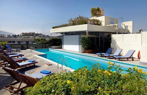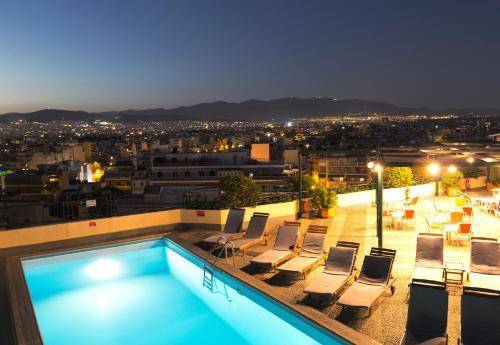 One of the amenities one would not ordinarily find in a mid-range Athenian hotel is a swimming pool. We love that the Stanley has an outdoor pool—located on the roof, no less, where it offers vistas of the Acropolis and Lykavittos.