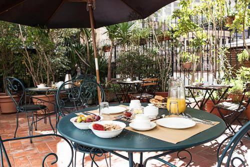 Guests share a fabulous living and dining room area, which is outfitted with big armchairs and an intricate stone fireplace. But the best part about the Fashion House is its ample, flower-filled veranda, an oasis in the big city. It’s an ideal spot to chill after a busy day of shopping and exploring, and it’s also a lovely setting for a generous buffet-style breakfast spread with pastries, ham and cheese, toast, juices, fruit, yogurt and (of course!) café con leche. It’s available at an additional charge, but you’re likely to spend the same or more at a nearby bar.
