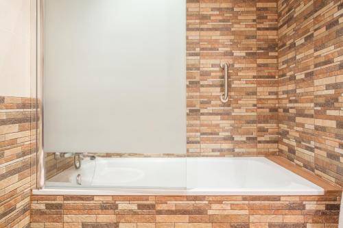 The bathrooms, all private, are renovated and tiled in gray. Toiletries are provided, as are large mirrors and ample counter space. In addition, bathrooms have nice extras like hair dryers and bathtubs.