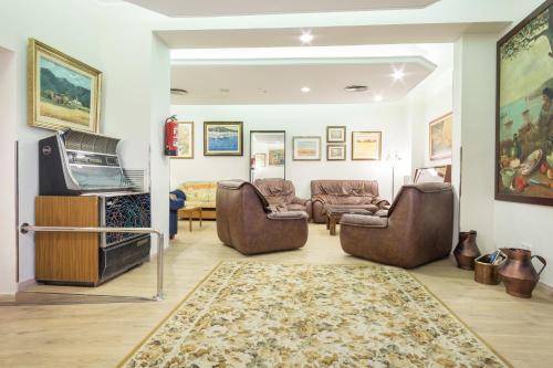 Downstairs, the cheery lobby doubles as a small lounge with a few couches and a free Internet station. Large meeting rooms are available for groups.