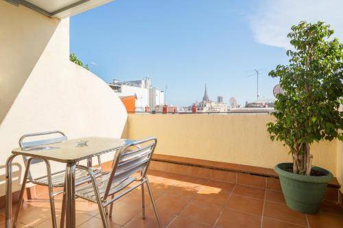 All rooms are equipped with air conditioning, a TV, phone, mini-fridge and safe. Ten have small French balconies and a couple has terraces with tables and chairs (we suggest asking for these, as it’s a treat to have a sunny terrace in Barcelona). Rooms in the back of the hotel are the quietest.