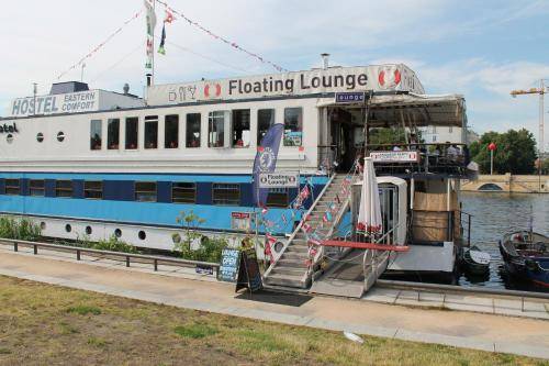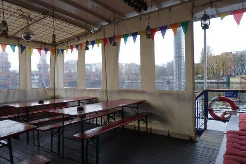 All of the main facilities are located on the Eastern Comfort. Head to the boat’s stern to find a tiny seating area. Smokers usually occupy the table and chairs on the small outside deck (smoking is not allowed in the interior areas). A laidback café on the top deck offers more elbow room and expansive views of the river and the East Side Gallery.