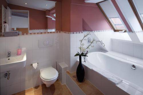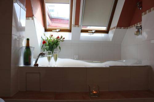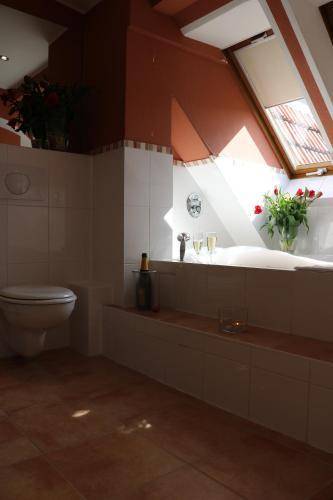 The Hotel Air in Berlin’s 64 guest rooms are simple and comfortable. They are equipped with a desk, television, phone and minibar, and many of their private bathrooms are quite spacious. Bathtubs are available.