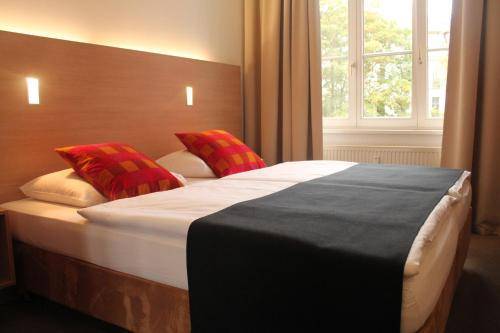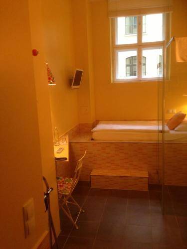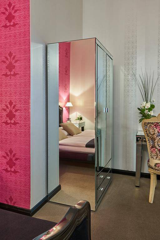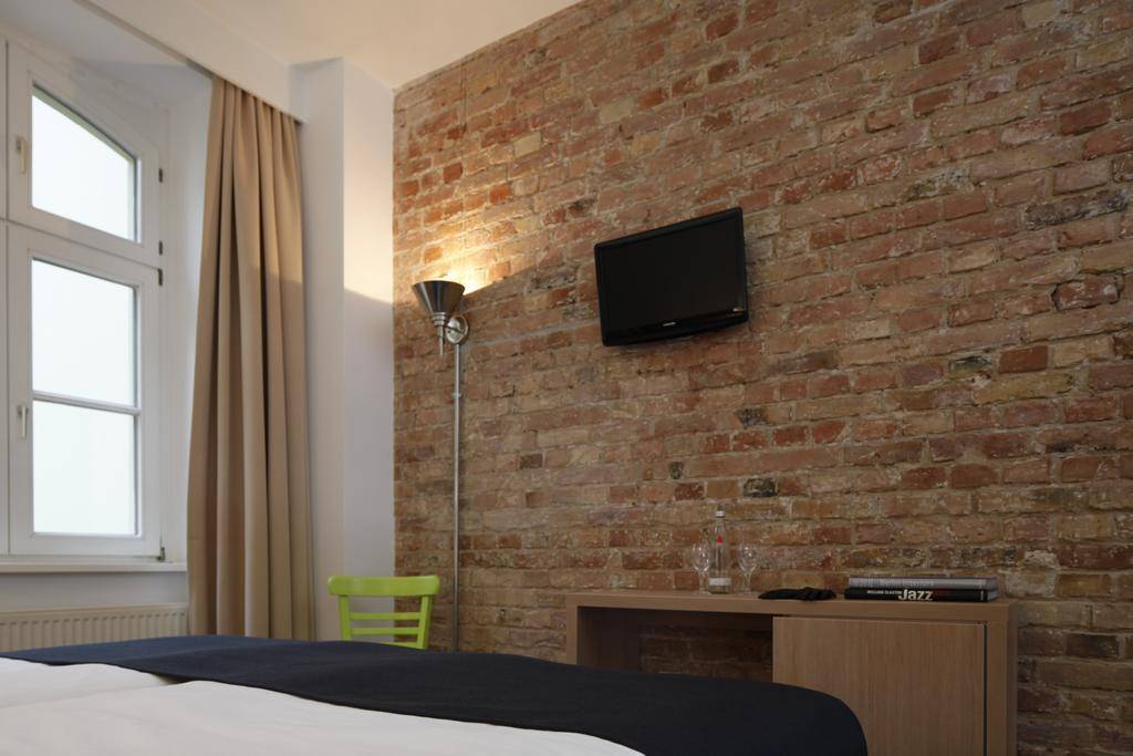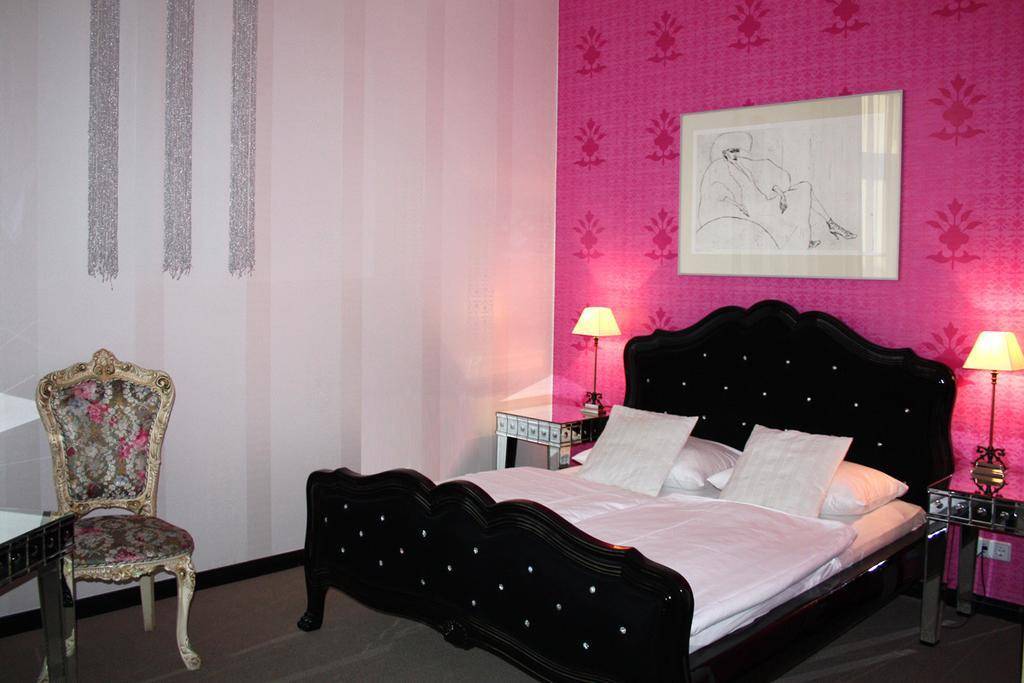 Each of the Hotel 38’s four floors has a different color palette, and rooms are decorated accordingly. First-floor rooms are minimally decorated, with black-and-white Berlin photographs to jazz things up, while rooms on the second floor are whimsical. The “China Room,” for example, features paper lanterns, lacquered Chinese furniture and deep red walls with metallic gold trim. Our favorite room is deliciously glam, with a bubblegum-pink accent wall, black vinyl bed, mirrored vintage-esque closet and black-and-white Matisse-style drawing.