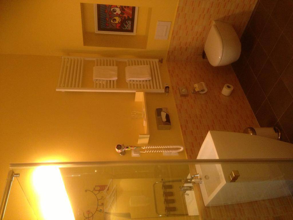 Like the rooms, the bathrooms vary greatly, with some feeling ample and others quite cramped. Modest travelers should note that, due to the nature of the renovated building, some rooms do not have a separate compartment for the shower. Still, bathrooms are clean and modern, showers are powerful, and a hairdryer and toiletries can be found in each room.