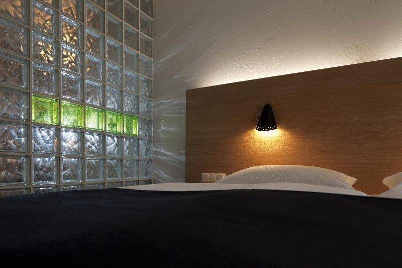 The Hotel 38 offers 32 guest rooms, many with unusual floor plans. Some rooms are rather spacious while others are very small. Furnishings are of the utilitarian (but still attractive) variety: streamlined wooden beds with built-in side tables and narrow desks with orb-like lights.