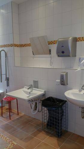 Most rooms at the Happy Go Lucky share bathrooms. The tiled facilities may evoke high school memories, but they are very clean. A hair dryer is available (but you’ll have to bring your own toiletries).