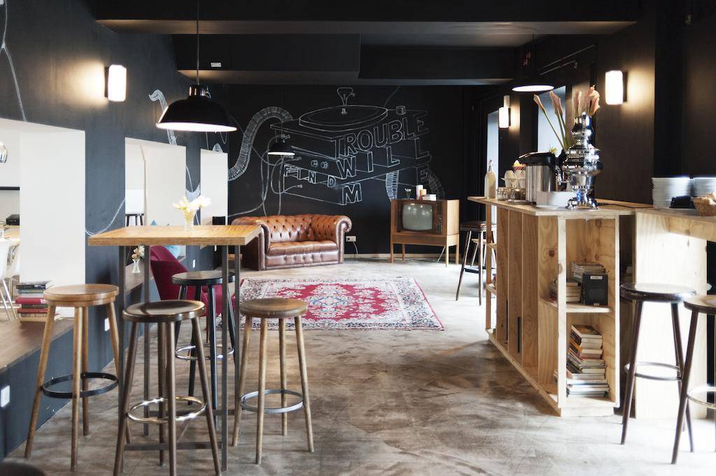 Located in a towering, white brick building off hectic Warschauerstrasse in Friedrichshain, the Michelberger Hotel offers an eclectic collection of lounges, cafés, and concert venues. Owner Tom Michelberger and his artist, designer and builder friends designed the place from top to bottom. Instead of organizing themselves around a specific theme, they simply made things up as they went along. As a result, the Michelberger’s theme is… no theme. As a tribute to Berlin, a city constantly in flux, it has a raw, unfinished look because of (and not despite) its high-concept, high-design pedigree.