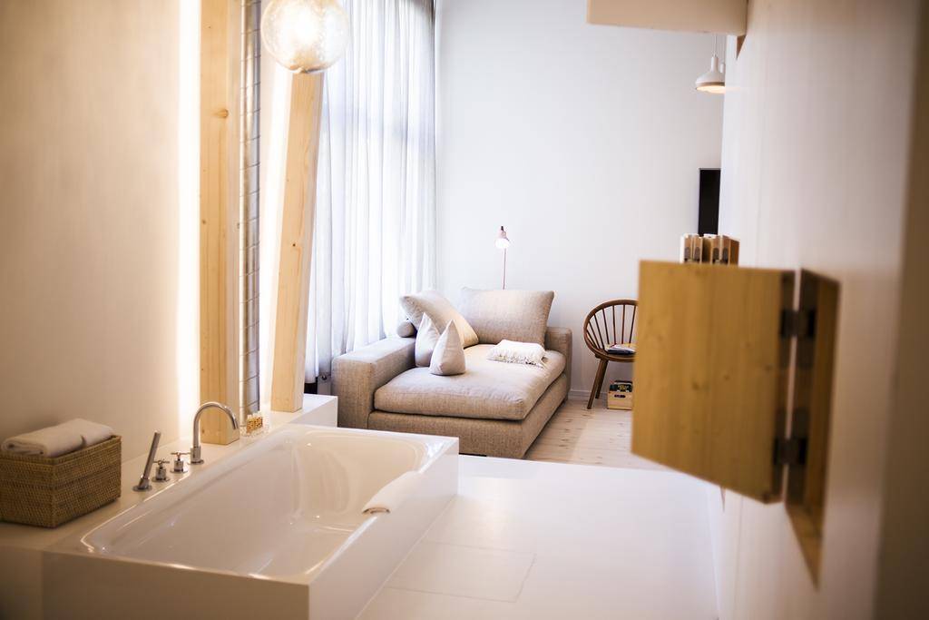 The private bathrooms are clean and modern. Some double rooms feature a shower with a big glass window overlooking the entire room (steam provides a bit of privacy, we hope), while some luxury rooms have sumptuous sunken tubs.