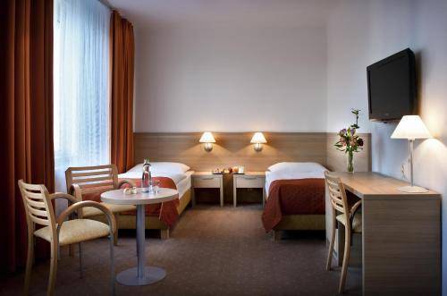 The lobby is an exercise in overdone 1980s boldness, with fake ivy-like vines draped over an austere, fortress-like reception. Though the rooms are simple, the Tatra does have business hotel facilities, including a meeting room, an office center, and an on-site restaurant and bar. And the location is quite wonderful, technically in Staré Mesto, just a 10-minute walk to the Old Town's heart.