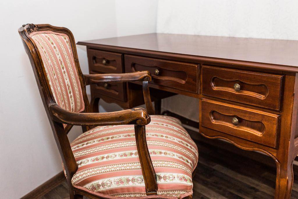 The reception area, up a flight of stairs, has a very warm, folksy feel, replete with an antique radio and telephone on display. The feel is quite nice in an understated vintage-furniture-store way.