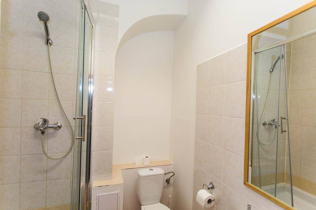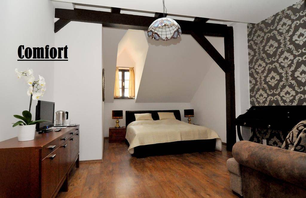 Most of the Old City Hotel's 15 rooms occupy space in an arcade off Michalská. We liked the rooms facing Michalská the most, with their small windows looking over the well-trafficked cobblestone street. Maroon wall-to-wall carpets, yellow paint, and restrained mid-century furniture are the predominant aesthetic characteristics. Other furnishings include Ikea-esque contemporary striped lampshades. Basic room amenities include television, radios, and DVD players.