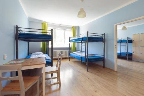Upsides? Location and staff. This is also a quiet hostel, located inside a courtyard off busy Špitálska. The hostel also has a lovely back patio of its own, an open space enclosed by three walls, one of exposed brick. Other perks include a fussball table, a bike storage area and free linen and towels.