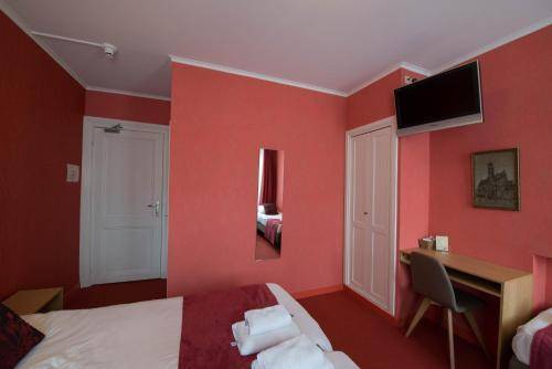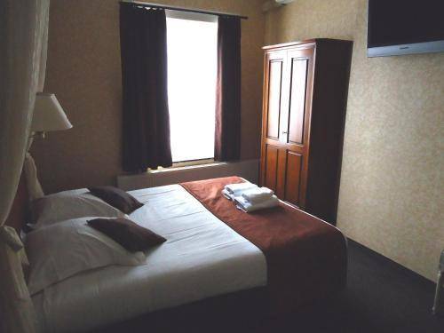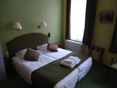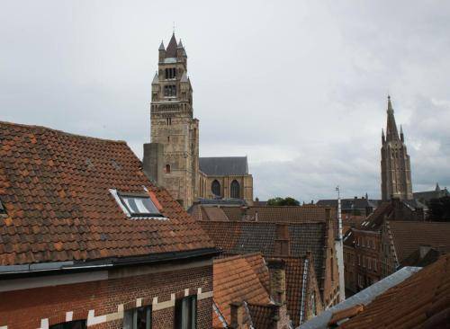We spent four very comfortable nights in a single room on the top floor, in a former attic space. Very tall guests might object to the slanted ceiling and others might not like the hike to the fourth floor, but we found our room—featuring a skylight view over western Bruges—quite homey.