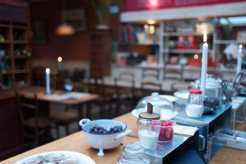 The lobby is on the dingy side, but just past reception is the breakfast room, a retro curiosity shop and a diner rolled into one. In this eccentric and cluttered room, you’ll see a sumptuous breakfast buffet (extra charge) competing for countertop space with comic books and plastic Smurfs from the ‘80s.
