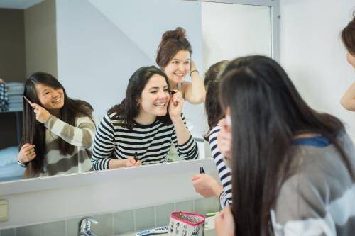 The 46 rooms fall a bit short of inspiring. The yellow curtains and flimsy mattresses are dated, and some of the rooms have linoleum flooring. Many, though, afford views of the lovely Art Nouveau residences that surround the hostel. All doubles and singles have adequate en suite bathrooms. Dorms have clean but dark communal bathrooms with a shower stall and a toilet, either attached or in the hallway.