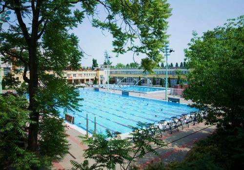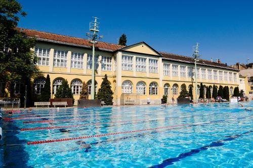 The atmosphere of the Császár is that of a friendly country club. Originally a cloister, the hotel courtyard now features a 50-meter swimming pool. The breakfast room, with its tall windows and charming, round tables, resembles a second floor club house overlooking the heart of Olympic training history.