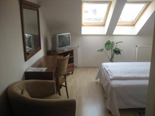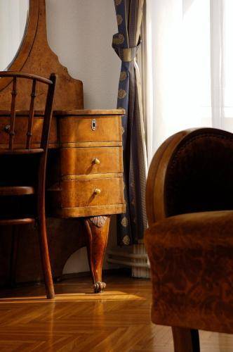 Nine rooms on the top floor have gabled ceilings with sky lights, and, unlike the rooms on lower floors, feature modern furniture. The pristine state of all the furnishings doesn't suggest a stag clientele, and it made perfect sense to us when management stressed that party-hungry guests would be happier elsewhere.