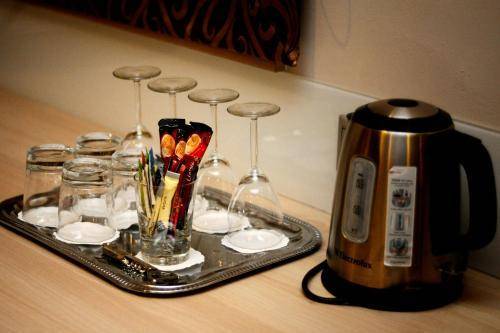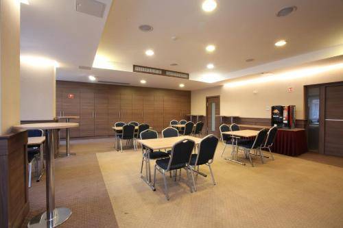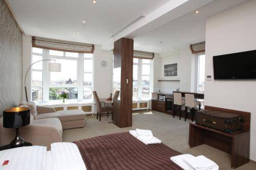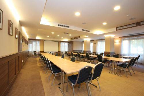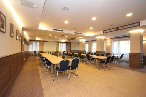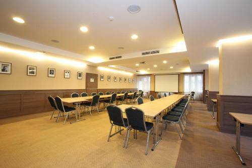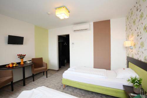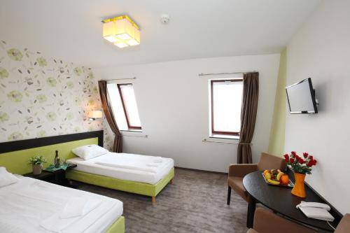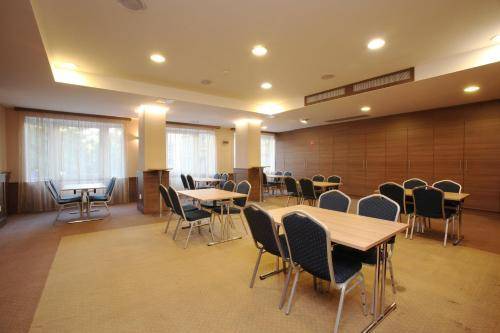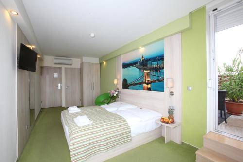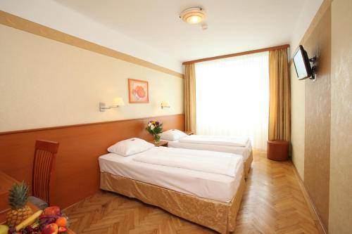 Front rooms offer a view of the green Jókai tér. Furnishings in the 69 rooms aren't quite as picturesque. Standard beds sit atop worn parquet flooring. Chairs look like they were designed to occupy a hospital waiting room. But all rooms are clean and comfortable, with modern amenities including satellite television and free Wi-Fi. En suite bathroom walls are covered with bright tile, which looks as if it would be home in a 1960s color palette.