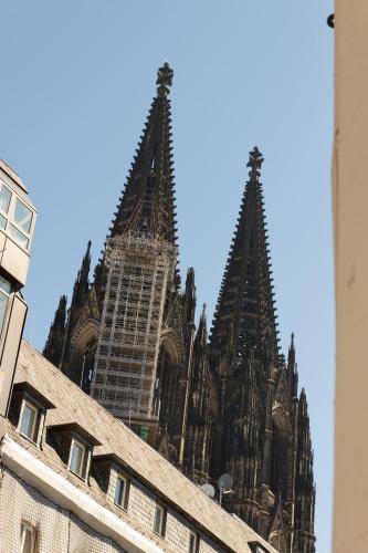 0.4km to city centerThe inspiring northern end of Cologne's Altstadt (Old Town), known as Altstadt-North, is located on the west side of the Rhine River. The Dom, with its soaring twin spires, is situated a block south of the train station and easy to spot from all directions. The iconic Roman Arch sits just west of the Dom on Trankgasse and next to the tourist office. Gross St. Martin, a block from the river, towers over the Fischmarkt with four turrets circling its own central spire.