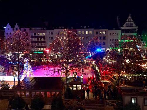 0.4km to city centerThe inspiring northern end of Cologne's Altstadt (Old Town), known as Altstadt-North, is located on the west side of the Rhine River. The Dom, with its soaring twin spires, is situated a block south of the train station and easy to spot from all directions. The iconic Roman Arch sits just west of the Dom on Trankgasse and next to the tourist office. Gross St. Martin, a block from the river, towers over the Fischmarkt with four turrets circling its own central spire.