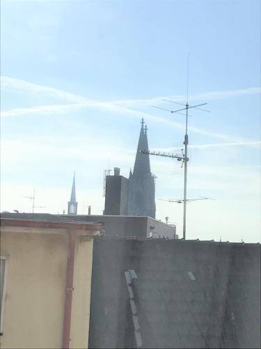 0.4km to city centerThe inspiring northern end of Cologne's Altstadt (Old Town), known as Altstadt-North, is located on the west side of the Rhine River. The Dom, with its soaring twin spires, is situated a block south of the train station and easy to spot from all directions. The iconic Roman Arch sits just west of the Dom on Trankgasse and next to the tourist office. Gross St. Martin, a block from the river, towers over the Fischmarkt with four turrets circling its own central spire.