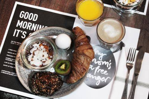 We couldn't help but gush over a small detail we noticed on our way out the rooms: General Manager Mai Kappenberger has designed an incredibly stylish alternative to the standard "do not disturb" sign. The block with the red hand means "let me sleep," while the abstract silhouette of a maid means "clean me, please!"