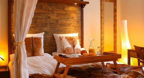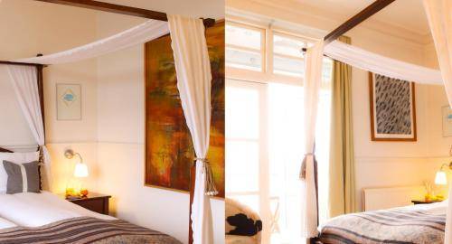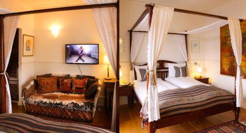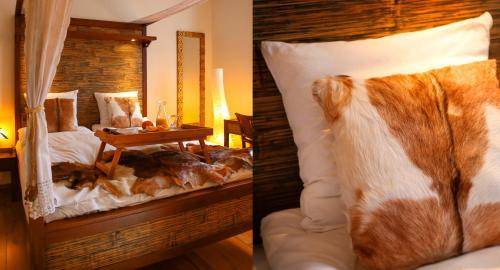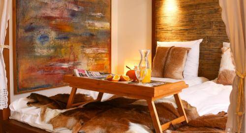 The 64 guestrooms are spread between the hotel's main building and a building located beyond the 66's modest courtyard area. Rooms are decorated in the "French colonial style," complete with dark wood furnishings and cow hide chairs. The one-of-a-kind gilded mirrors (made in Bali) are an especially attractive touch. Many rooms boast canopy beds, and superior rooms come with either a bathtub or a balcony. Bathrooms feature organic toiletries which management helped create.