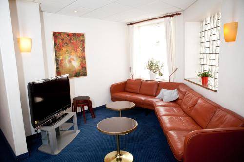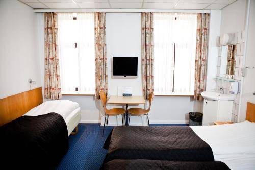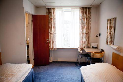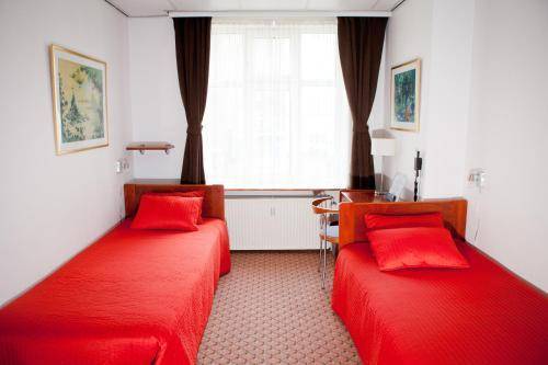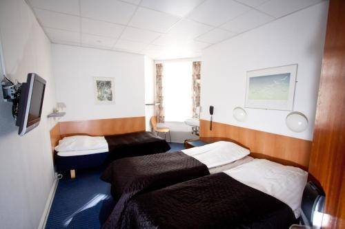 Though not exactly shiny or new, the Saga's rooms are clean and comfortable: the simple furniture and decoration are evidence of a recent facelift. The odd vintage Danish or Matisse-style art print brightens things up a bit. The bathrooms are clean and simple with linoleum floors. We suggest getting a room that overlooks the quiet courtyard.