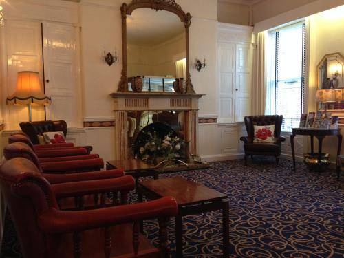 Restyled one too many times, to within inches of its life, the Dergvale Hotel has a lobby that's simultaneously compelling and perplexing. The elegant doorway puts you in one frame of mind, while the patterned carpet and non-working fireplace put you in another.