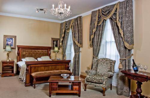 Then there are the Georgian rooms, available upon request. They’re fancy, with overstuffed chairs, ottomans, dainty bedside lampshades. The model we saw was massive, and surely at the top end of the hotel’s rate scale. All rooms are equipped with a television, and air conditioning is available (request ahead).